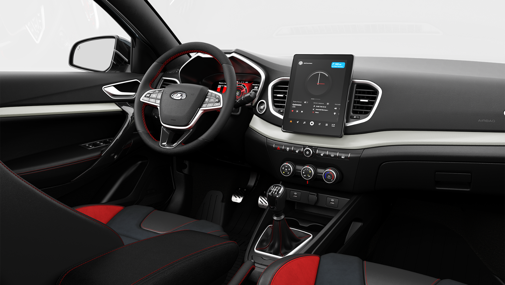 LADA Vesta Sport выпускается в максимальной комплектации «Техно», которая включает полностью светодиодную технику, ABS, EBD, BAS, ESC с возможностью отключения, TCS, систему помощи при трогании на подъеме, систему мониторинга слепых зон, бесключевой доступ, дистанционный запуск двигателя, электростеклоподъемники всех дверей, 17-дюймовые легкосплавные диски, обогрев рулевого колеса и всех сидений, полный обогрев ветрового стекла, передние и задние парктроники, камеру заднего вида, датчики дождя и света, круиз-контроль, кондиционер, аудиосистему с 8 динамиками, а также мультимедийную систему LADA EnjoY Vision Pro с 10-дюймовым экраном и уникальной для рынка 10-дюймовой цифровой комбинацией приборов и др.